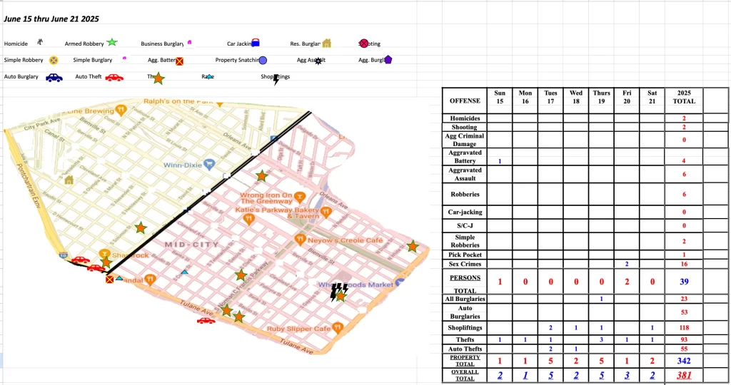 6/19/25 10:00 am N. Broad and Bienville (bike theft) Lacy Williams W/F 1/11/82 arrested